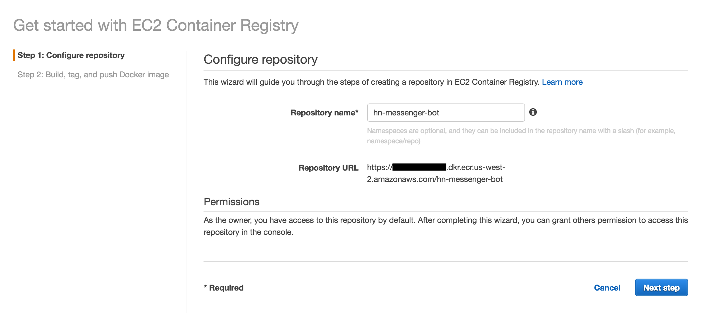 docker push accountid.dkr.ecr.us-west-2.amazonaws.com/hn-messenger-bot:0.0.1